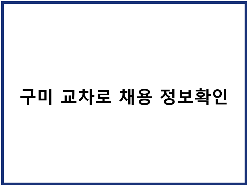 구미 교차로 구인구직 실시간 채용속보를 빠르게 알고 싶은데, 정보가 너무 많아서 뭘 봐야 할지 막막하신가요? 이제 걱정은 뚝! 구미 교차로 채용 정보확인을 통해 믿을 수 있는 최신 채용 소식을 한눈에 파악할 수 있도록 도와드릴게요. 구미 교차로 구인구직 실시간 채용속보를 놓치지 않고 확인하는 가장 쉬운 방법을 알려드릴게요.