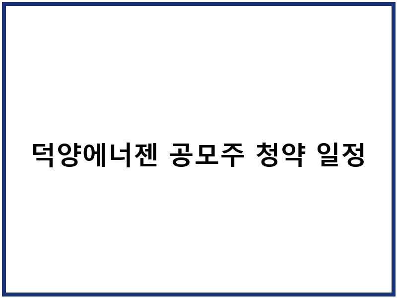 덕양에너젠의 코스닥 상장을 위한 공모 절차가 차근차근 진행되고 있습니다. 현재 기관 투자자를 대상으로 수요 예측이 진행 중이며, 이 기간이 끝나면 일반 투자자 여러분의 청약이 시작됩니다. 정확한 청약 일정을 확인하시고, 소중한 기회를 놓치지 않도록 미리 준비해두시는 것이 좋겠죠?