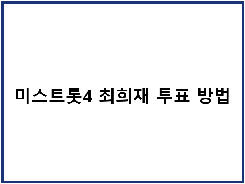 미스트롯4 최희재 님에게 투표하는 방법은 아주 간단해요. 공식적으로 안내되는 투표 절차를 따르면 누구나 쉽게 참여할 수 있습니다. 아래에서 자세한 방법을 확인해보세요.