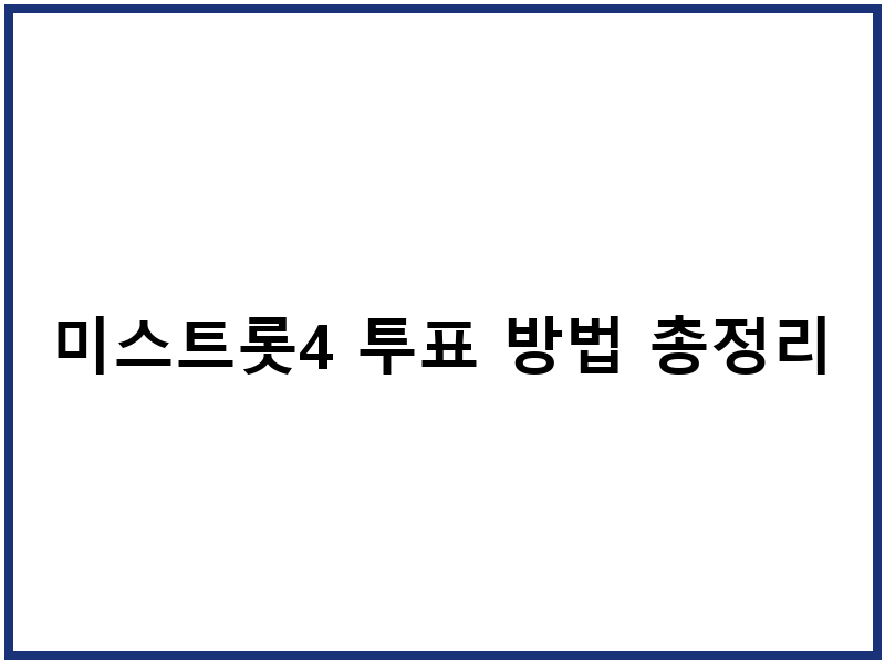 안녕하세요! 국민 오디션 ‘미스트롯4’ 시청자 여러분, 결과에 직접 영향을 미치는 여러분의 소중한 한 표를 행사할 시간이 다가오고 있습니다. 본 방송이 진행될수록 뜨거운 관심을 받고 있는 실시간 투표 방법, 문자 투표부터 온라인 참여 확인까지, 어떻게 해야 하는지 궁금하시죠? 오늘은 미스트롯4 투표에 대한 모든 것을 쉽고 명확하게 알려드릴게요.