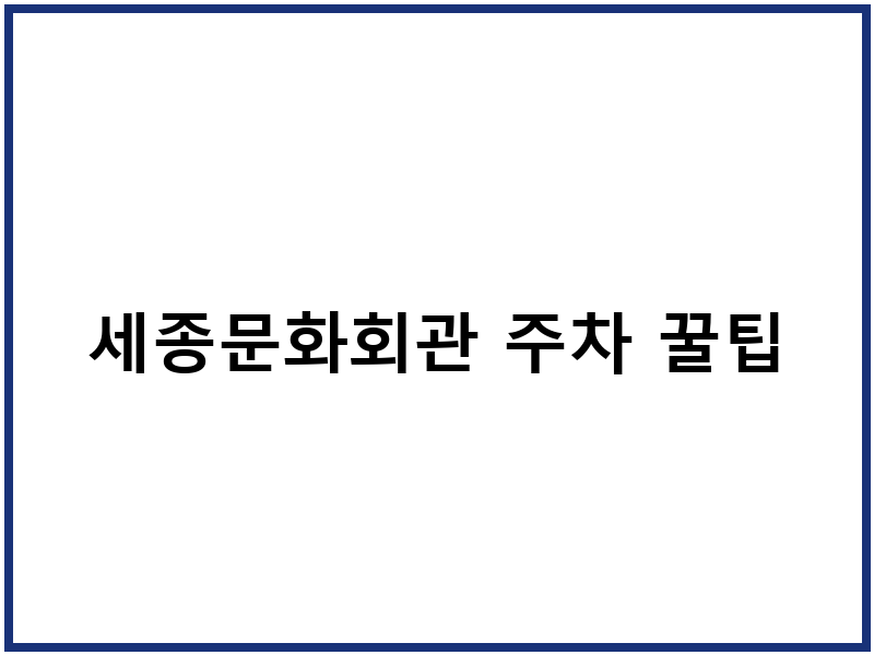 세종문화회관 주차 꿀팁