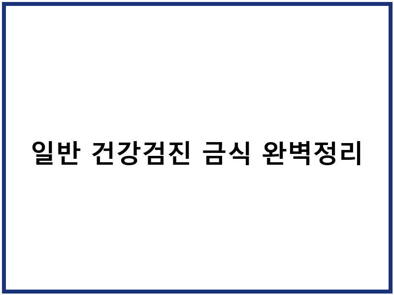 일반 건강검진 금식, 꼭 지켜야 하는 이유