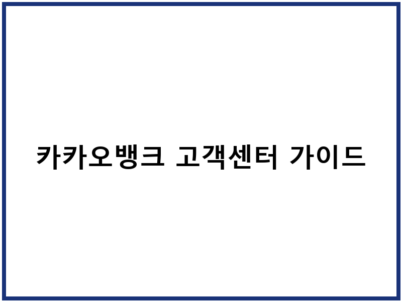 카카오뱅크 고객센터 이용 팁
