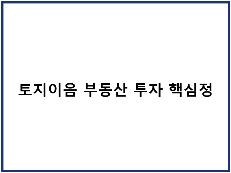 부동산 투자, 어디서부터 시작해야 할지 막막하신가요? 혹시 모를 위험 때문에 망설이고 계신다면, ‘토지이음’이 여러분의 든든한 길잡이가 되어줄 거예요. 이곳에서 제공하는 최신 정보를 꼼꼼히 살펴보시면, 투자 성공 가능성을 한층 높일 수 있답니다.