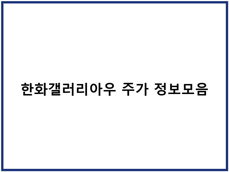 투자 결정을 위한 한화갤러리아우 주가 정보